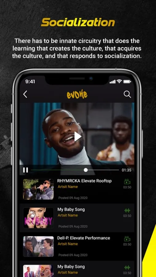 We are a content marketing/ promotion and hosting app where anyone can create and share content. It allows people to discover and enjoy content. You can connect directly with your following across the globe by instantly uploading an unlimited amount of content to share and receive detailed stats and feedback from the evoke the culture community.