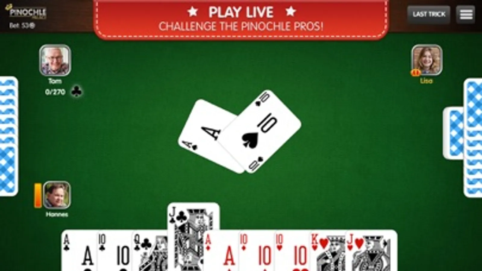 Pinochle Palace – Experience the traditional card game live and play for free against real players.