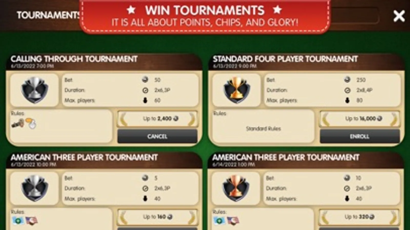 Pinochle is intended for an adult audience. According to German law, Pinochle is not a gambling game. In our app, there is no real money and no real prizes to win. Practice or success in casino games without real winnings ("Social Casino Games") does not imply future success in games for real money.