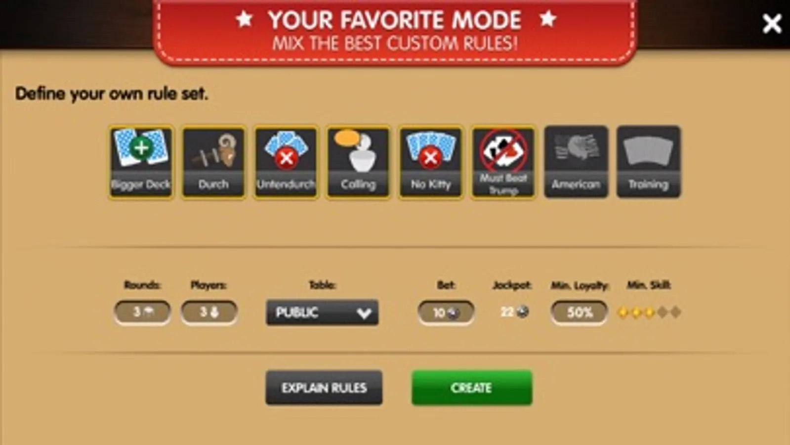 - Supported custom rules: American, No Kitty, Calling, and many more
