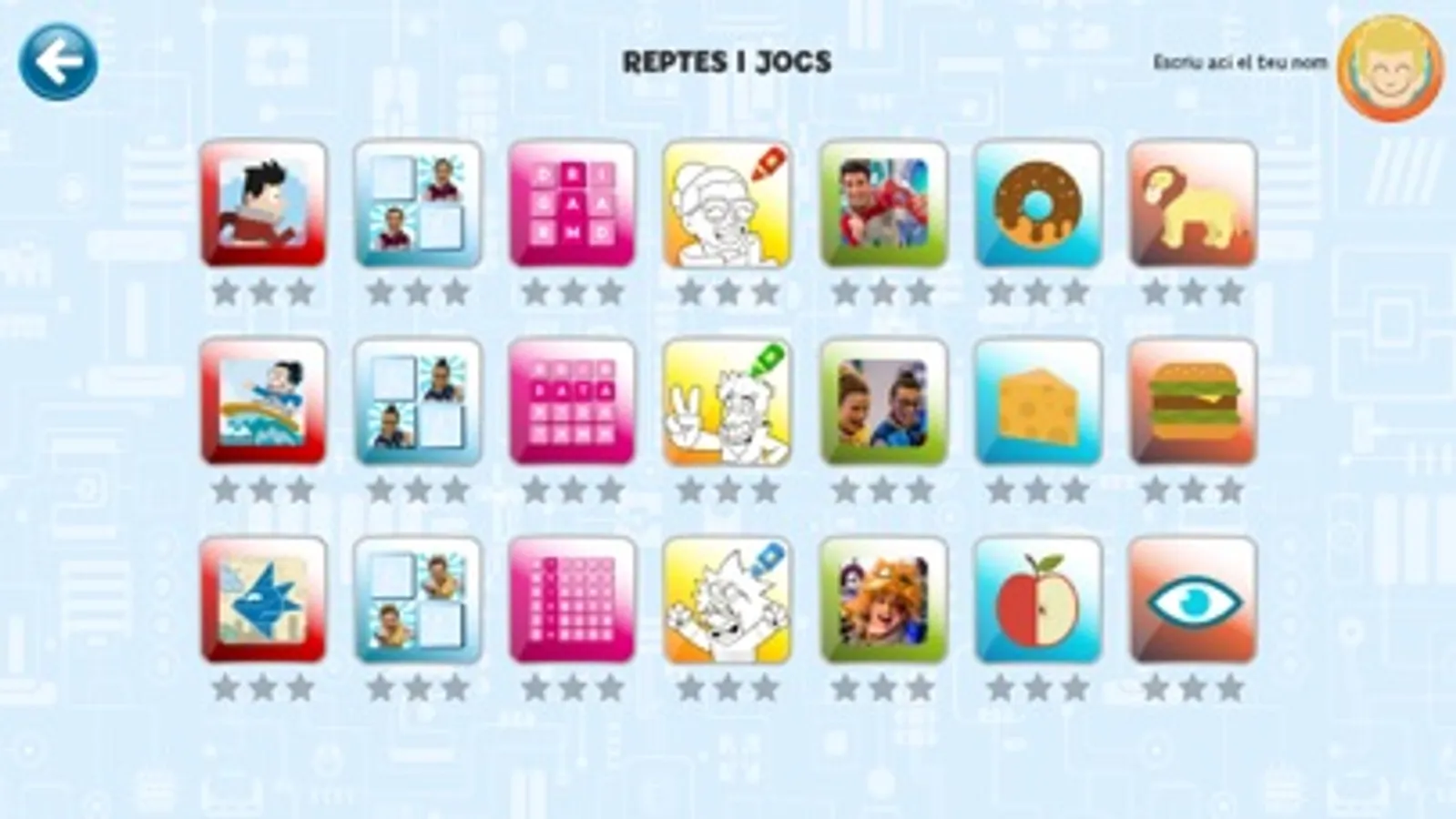 Els jocs educatius són vint-i-un reptes distribuïts en tres nivells de dificultat, amb jocs de selecció, arrossegament i creativitat com ara jocs de memòria, puzles, diferències, sopes de lletres...