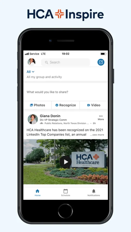HCA Inspire enables HCA Healthcare colleagues to communicate through social media-like feeds and receive important unit, facility, division, and enterprise communication. Colleagues with a My Scheduler Web profile can also access their schedules through the HCA Inspire mobile app.
