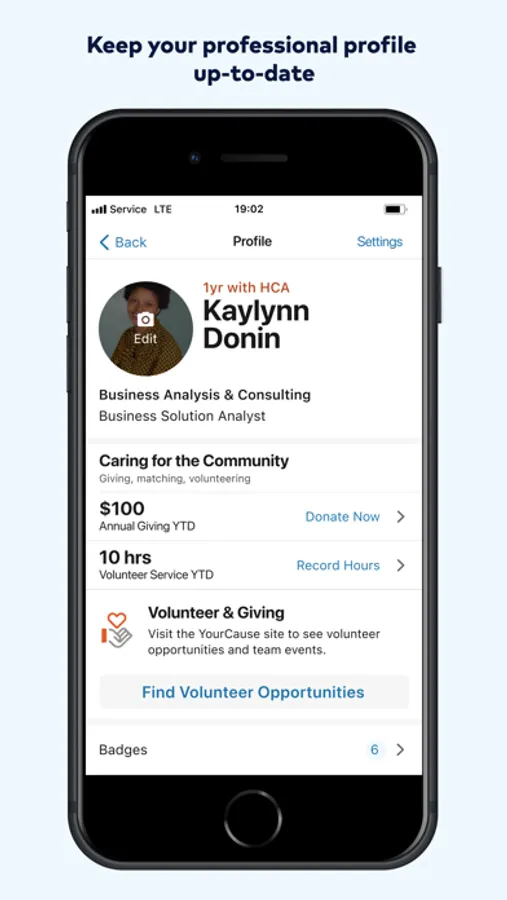 Badges: grouped into five different categories to help celebrate accomplishments: education and certifications, leadership roles, excellency, HCA Programs and competency