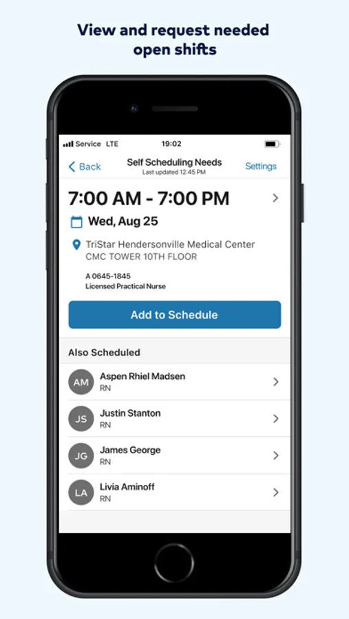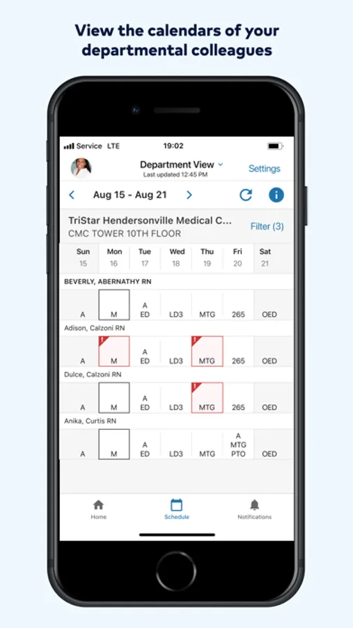 Schedule: My Scheduler integration, including the ability to view your schedule, self-schedule, request open needs and time off, swap shifts, and view the department calendar