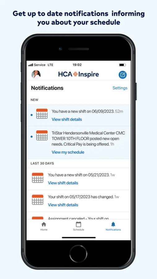 Notifications: receive notifications for activity within the HCA Inspire app, including for scheduling where applicable