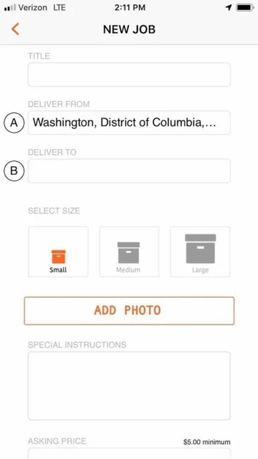 - Just open the app, sign up and tell us the item you’d like us to deliver and its shipping info. Take a photo and set your asking price for delivery to get a comparison vs UPS, FedEx and USPS.