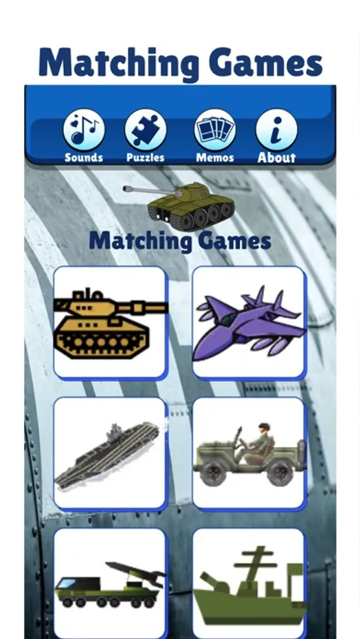 Another amazingly cool feature to the fun army: games for kids makes it even more awesome then just matching your little boy must find the icons that link for their match choices! And when they do make a linked match the little war game shows them the link. This important element, and the matching itself, provides a real educational bonus and playing army tank war games also promotes: