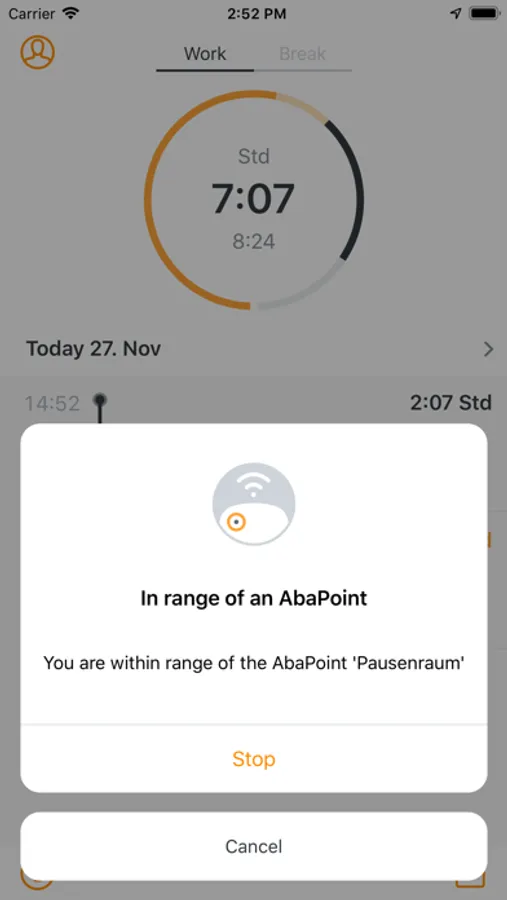 Tracking is also possible using AbaPoint: One or more AbaPoint beacons serve as a terminal at which employees can log on and off with their smartphone. Several points can be connected to each other to enable logging in at different locations.