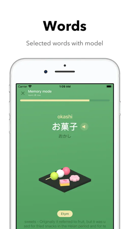 A learning style that incorporates multiple memory modes for intensive review based on the forgetting curve and proficiency level. And you can learn some useful Japanese words in line with your learning progress.