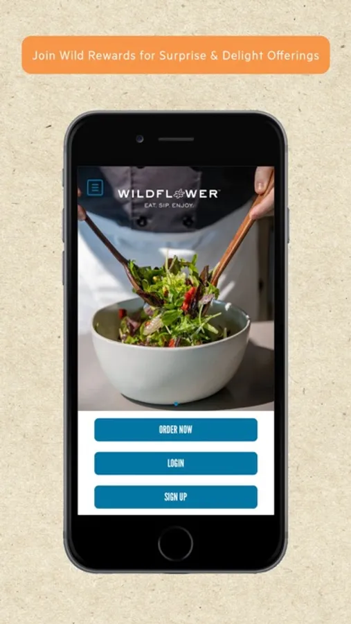 Skip the line, order ahead and earn rewards with the Wildflower app. Order breakfast, lunch and dinner in the app and pick it up in a flash. Your purchases will earn you status towards exclusive perks available only to Wildflower app users.