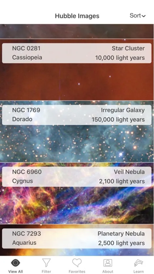 Space Views is a compilation of beautiful Hubble Images. You can view amazing details about each image, where in the sky they can be found (constellation), how far away they are and much more.