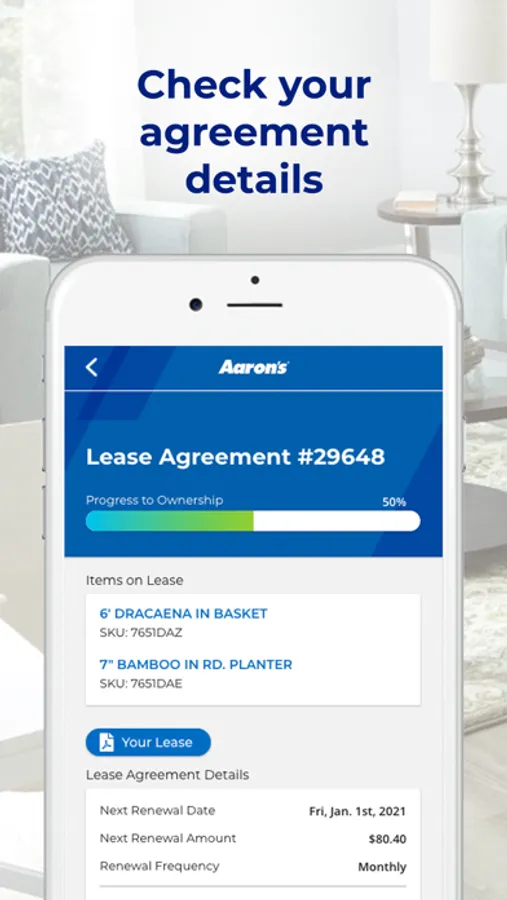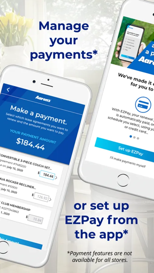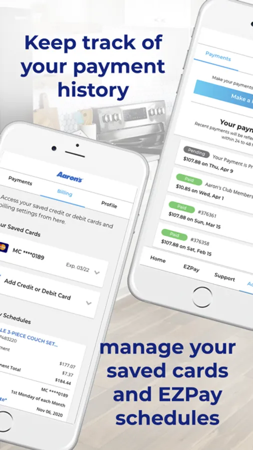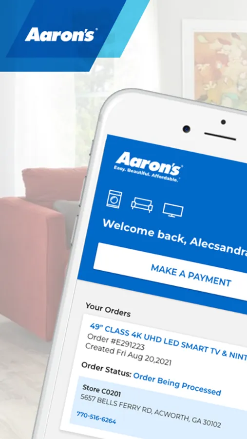 The Aaron’s app makes rent to own easier than ever by providing easy access to your account information right from your mobile device. Open the app anytime you want to: