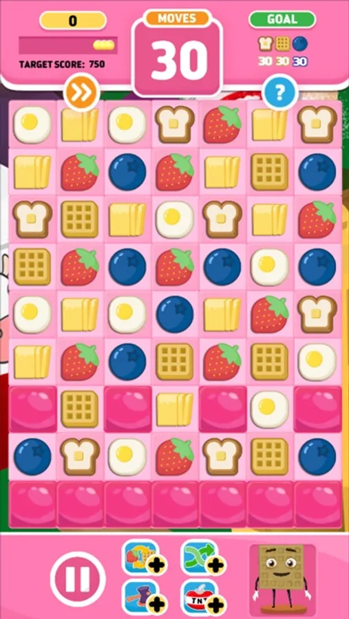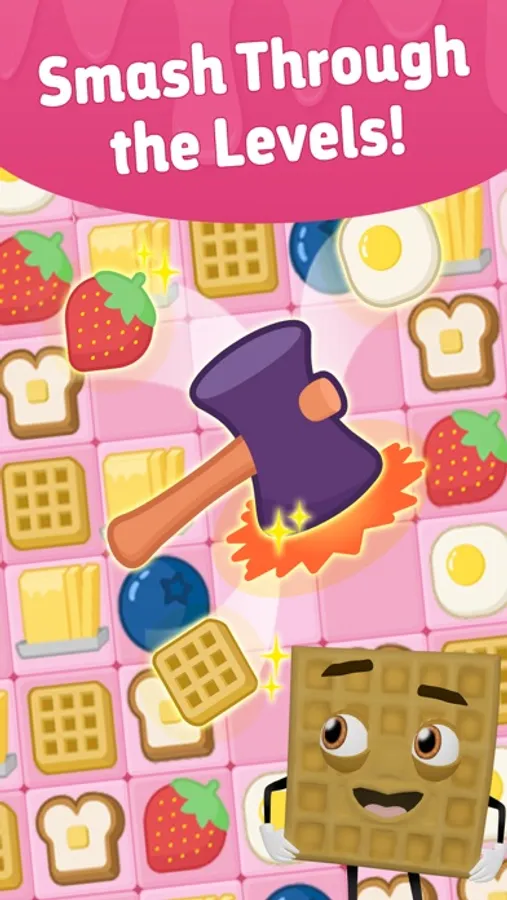 “Waffle Smash: Chicken & Waffles” is a connect 3 game where players try to connect 3 or more icons to complete objectives. The levels scale up in difficulty as the player progresses through the game. The art is in a cartoon, breakfast theme, that is loads of fun fun FUN!