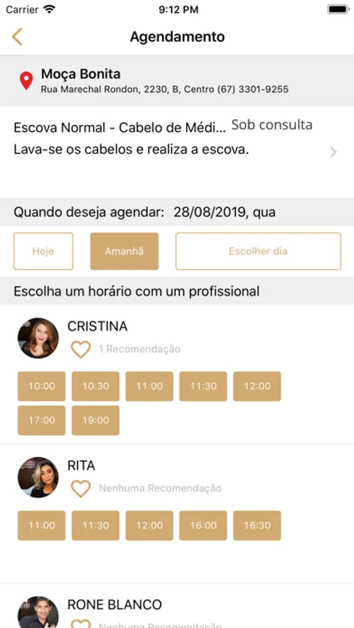 Na busca, você pode escolher seu profissional preferido, serviço, o melhor horário e a data de forma rápida e prática.