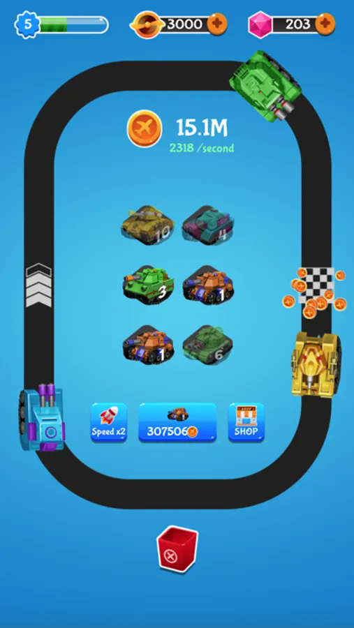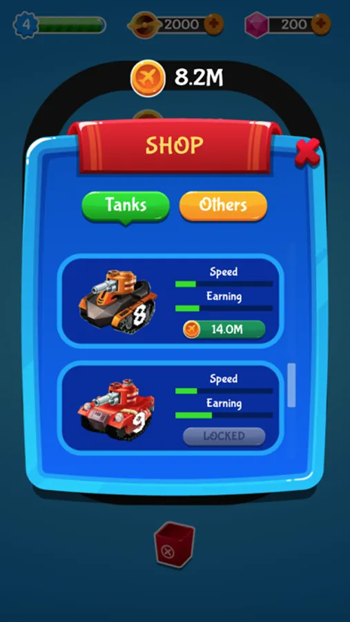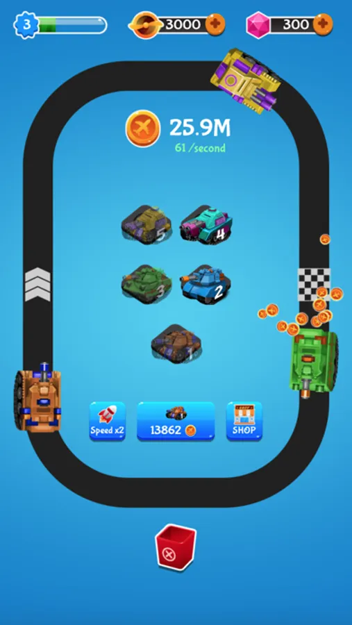 Merge Tank is combination of merge and idle game. Unlock new tanks, merge them to upgrade and earn more money.