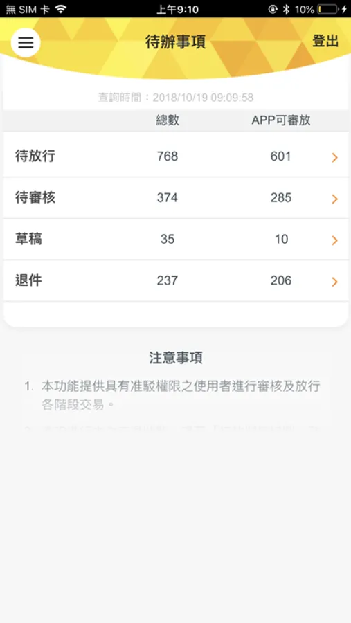 二、待辦事項:提供客戶其企業網路銀行具交易流程之案件,得至待審核作業 與待放行作業,就本服務提供之功能進行案件之查詢、審核或放行等服務。
