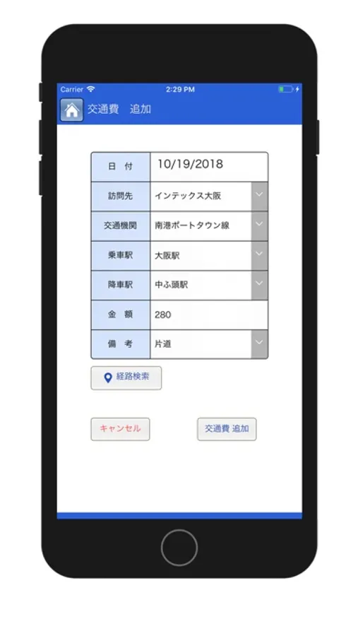 ・アプリ内で過去に作った交通費精算書の情報を記録する事ができます。