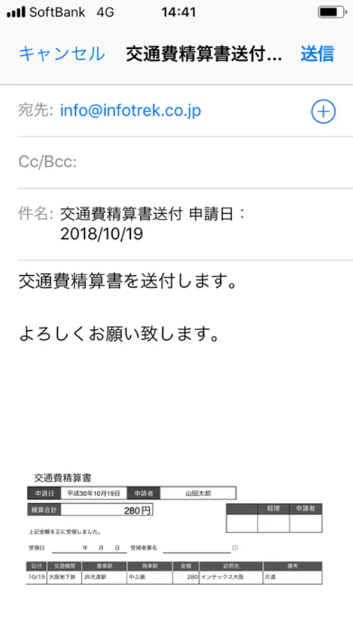 ・当アプリ専用の書式でPDFを作成し、メールで送信できます。