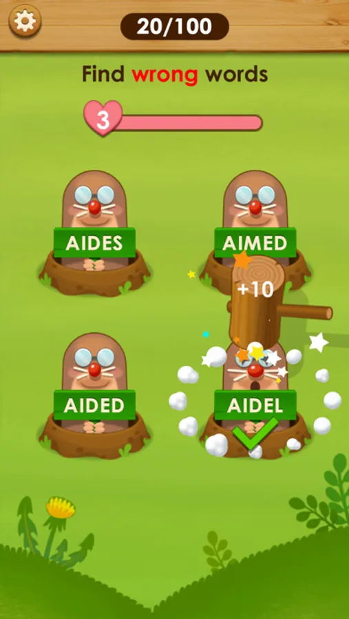 - Collect eggs from hens and get rid of moles by spotting correct words!