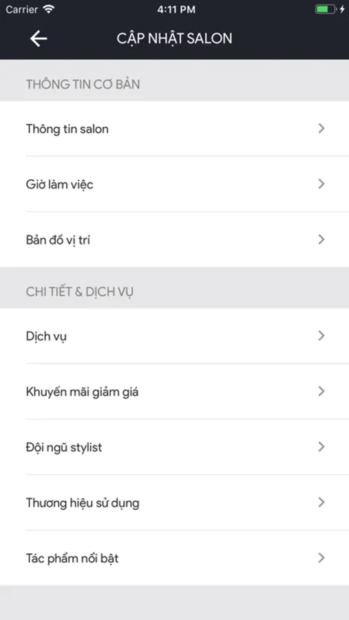 - Quản lý thông tin salon: địa chỉ, dịch vụ, stylist, khuyến mãi...