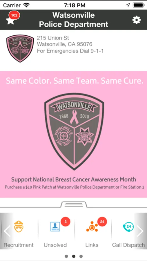 The Watsonville Police Department is committed to providing an open and two way communication link to the department. In partnership with LogicTree IT Solutions, Inc., the department now offers a mobile app that provides the perfect way for you to receive notifications of critical information immediately to your mobile device, as well as bulletins about missing persons, stolen vehicles, traffic incidents, etc. The Watsonville Police Department App allows you to easily submit tips (anonymously if desired), send comments, photos and place non-emergency calls to the department with the touch of a button.