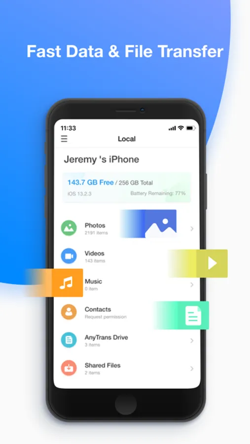 - Organize iPhone/iPad pictures, live photo, live photo video, music, videos, contacts, documents, zip files by category, and share it as you want, no quality loss.