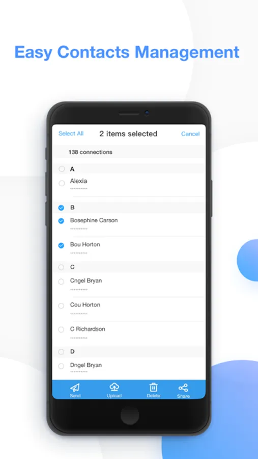- Quickly delete multiple contacts at once, and share files with friends, including large files.