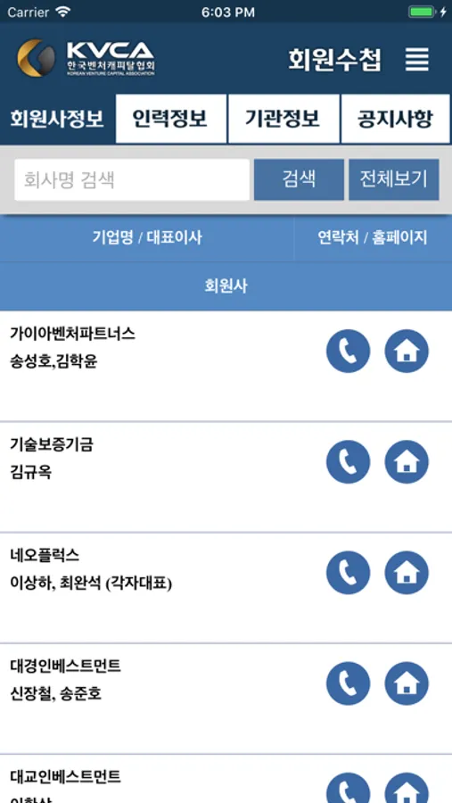 - 한국벤처캐피탈협회 회원사 및 인력 검색
