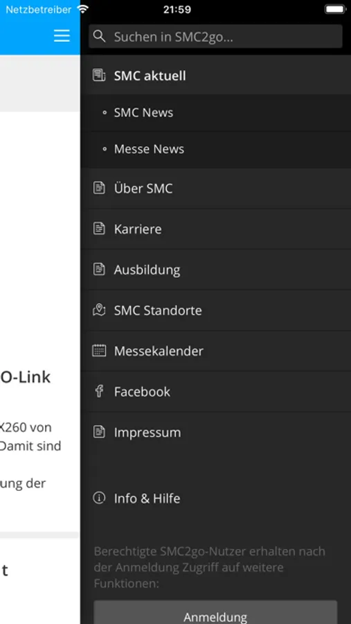 SMC2go ist die zentrale Kommunikations-App von SMC Deutschland, führender Hersteller, Partner und Lösungsanbieter für pneumatische und elektrische Automatisierungstechnik mit Sitz in Egelsbach bei Frankfurt am Main. Die App bietet tagesaktuelle Informationen über das Unternehmen, seine Produkte und Dienstleistungen. Ergänzt wird das Angebot durch Messe News und einen Messekalender, Informationen zum Thema Karriere und Ausbildung und den Zugriff auf Stellenangebote. Mitarbeitern und Partnern von SMC stehen weiterführende Informationen zur Verfügung.