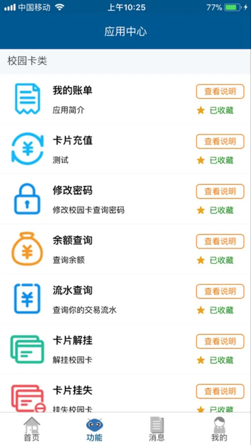 提供全面的校园卡服务,充值、信息查询、账单查询、流水查询、挂失/解挂、失卡招领、校园卡在线申请、校友注册等