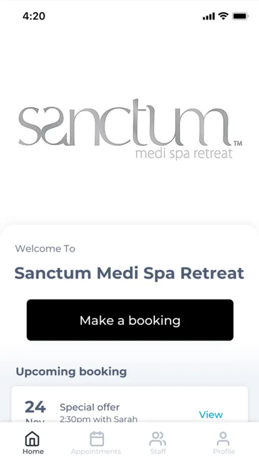 The Sanctum Medi Spa Retreat app makes booking your appointments and managing your loyalty points even easier. You're just a few taps away from feeling good and looking great!