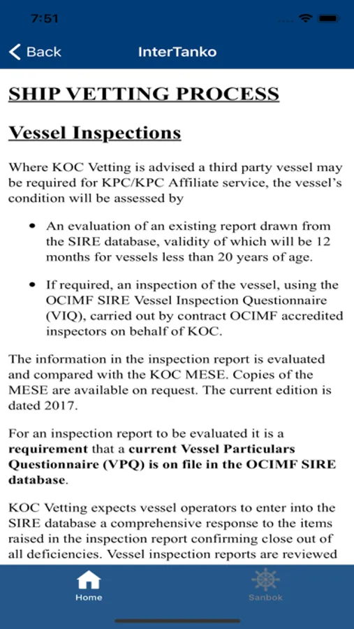 Providing access to all users to review KPC ship vetting requirements as published in the INTERTANKO guide.