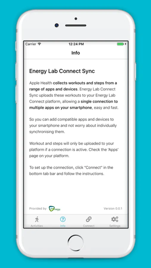This app takes the workouts and daily steps stored by your sports and activity trackers, through Apple HealthKit, and pushes these to the Energy Lab Connect platform, feeding your profiles and challenges with your workout and step data.