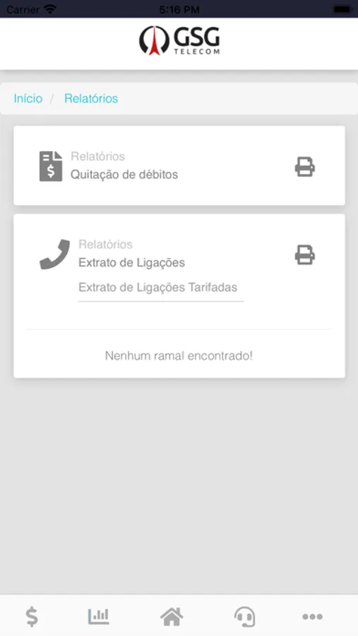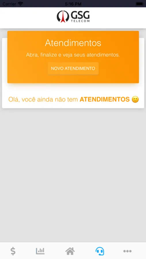 Aplicativo para acessar o serviço de atendimento ao consumidor da GSG Telecom.