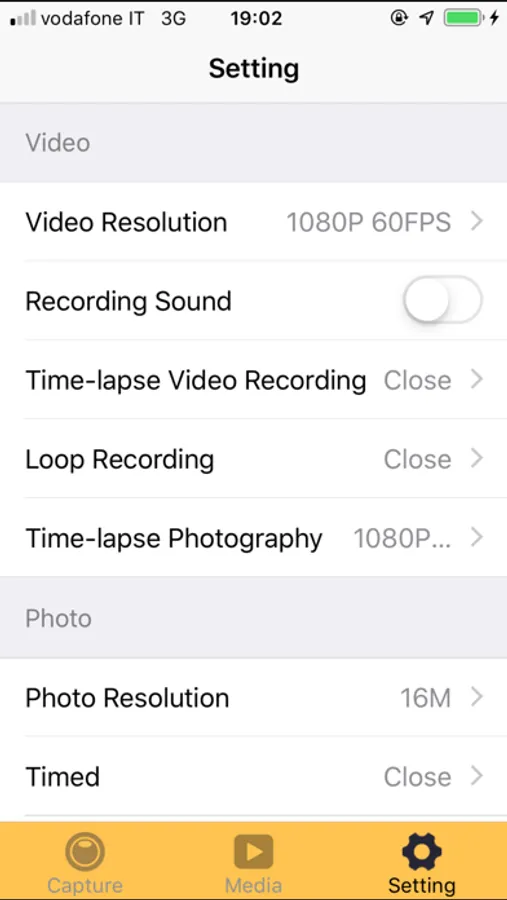 The App lets you change all of the camera's settings including photo quality, video and time-lapse modes and slow-mo.