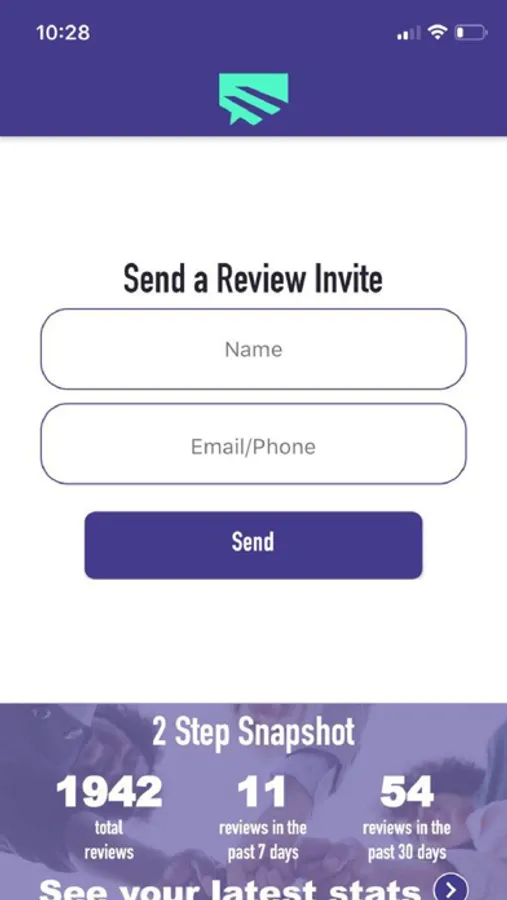 2 Step Reviews allows users to request reviews from their clients via text message or email.