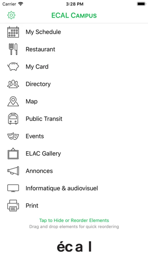 ECAL Campus is your all-in-one app for your studies at ECAL! Check your schedule, print from your phone, discover the restaurant menus, find rooms on the campus map, learn about upcoming events, annoucements, and more!