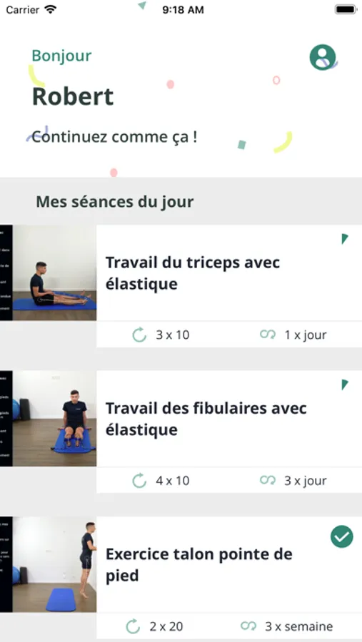 Qu’il soit chez lui, en vacances ou même en extérieur, votre patient a accès à ses exercices directement sur son smartphone grâce à son application mobile