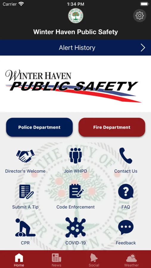 This mobile application is an interactive app developed to help improve communication with area residents. It allows residents to connect with the Winter Haven Police Department by reporting crimes, submitting tips, and other interactive features, as well as providing the community the latest public safety news and information.