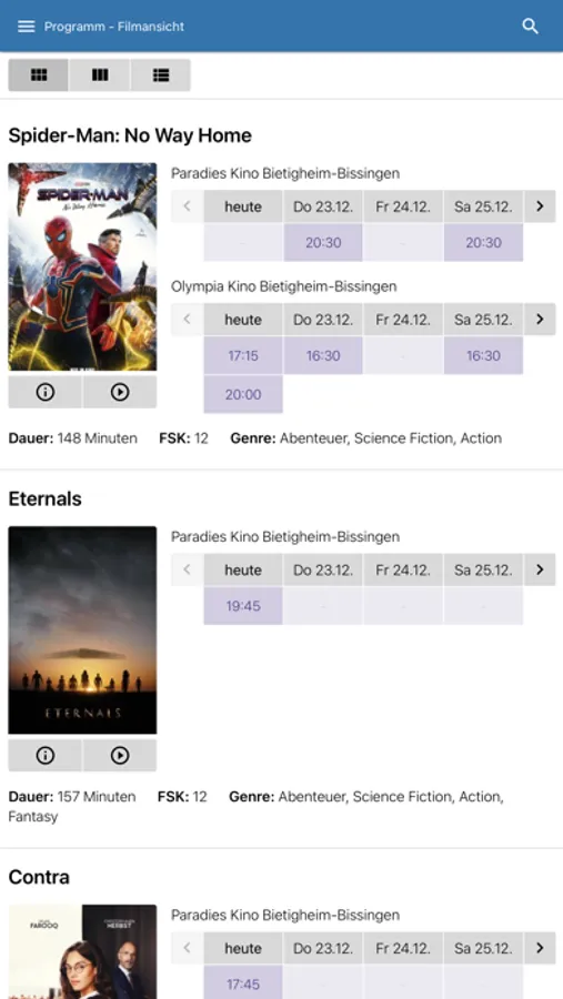 Hier kaufst Du in unter einer Minute Kinotickets für Deinen Lieblingsfilm. Schnell, sicher, einfach und ohne Anstehen an der Kinokasse. Einfach aus dem aktuellen Kinoprogramm Deinen Film buchen und Du erhältst die Tickets einfach & bequem als E-Ticket auf Dein Smartphone und an Deine E-Mail-Adresse.