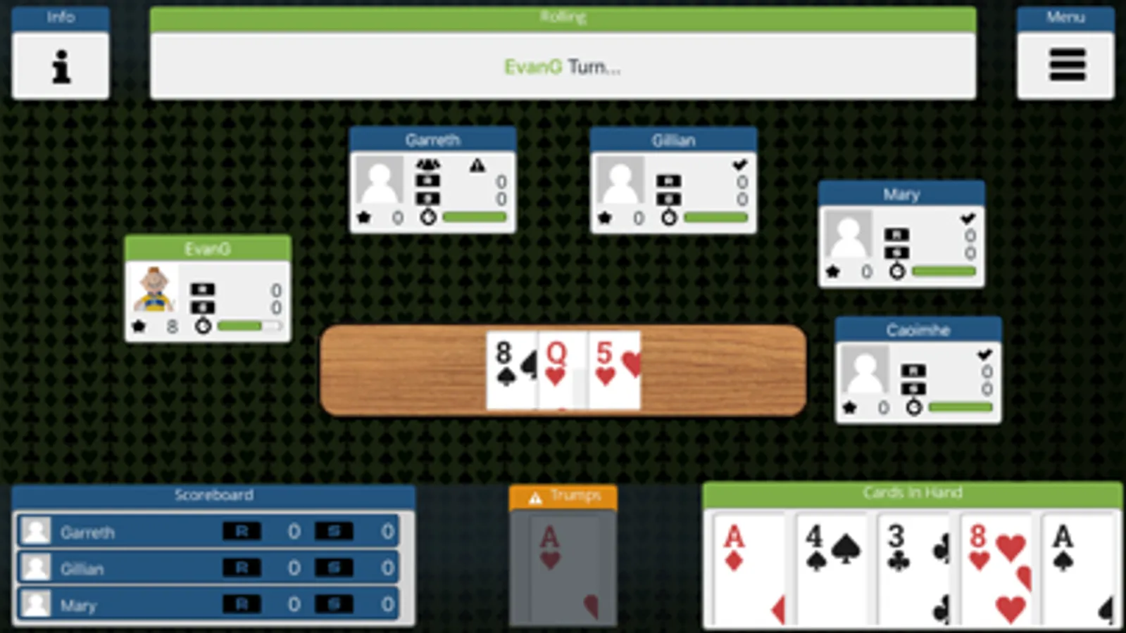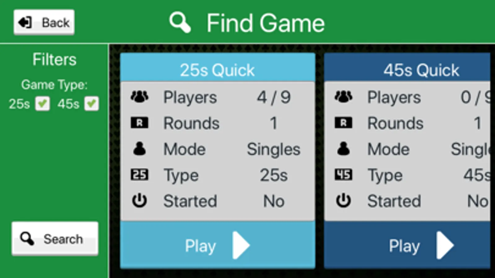 Up to 9 players can play 25s or 45s at the same table as individuals or as teams!