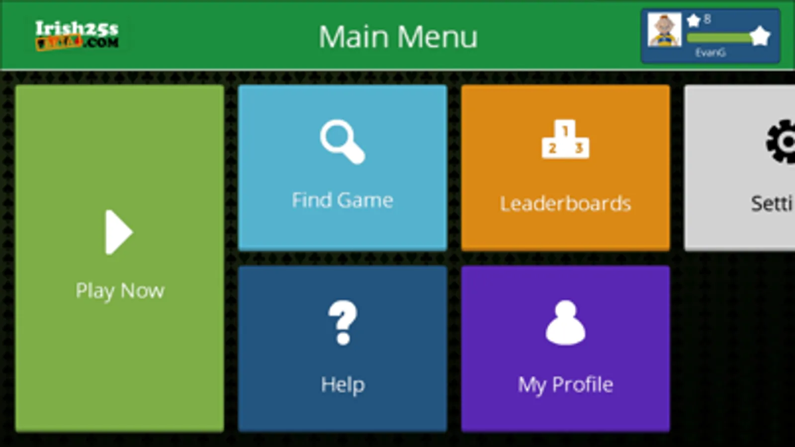 The Irish25s app allows you to play 25 and 45 card games online against your friends or computer opponents using a simple easy-to-use interface.