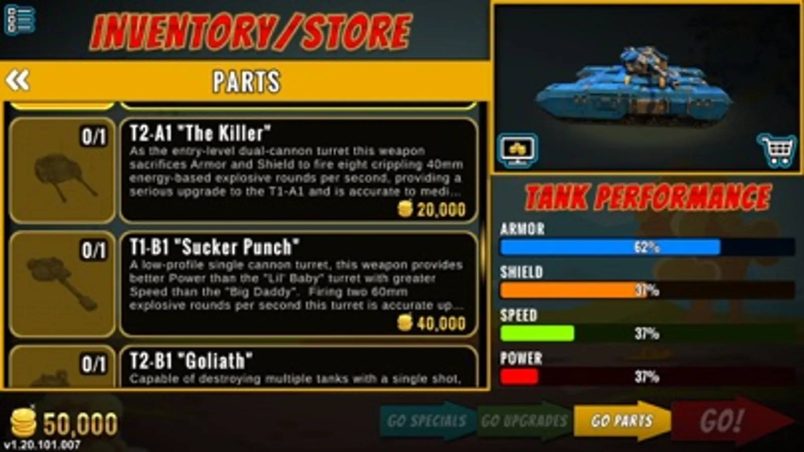 • With Tank Skill Slotz, the action keeps going and the slots keep spinning for as long as you can destroy the enemy tanks!