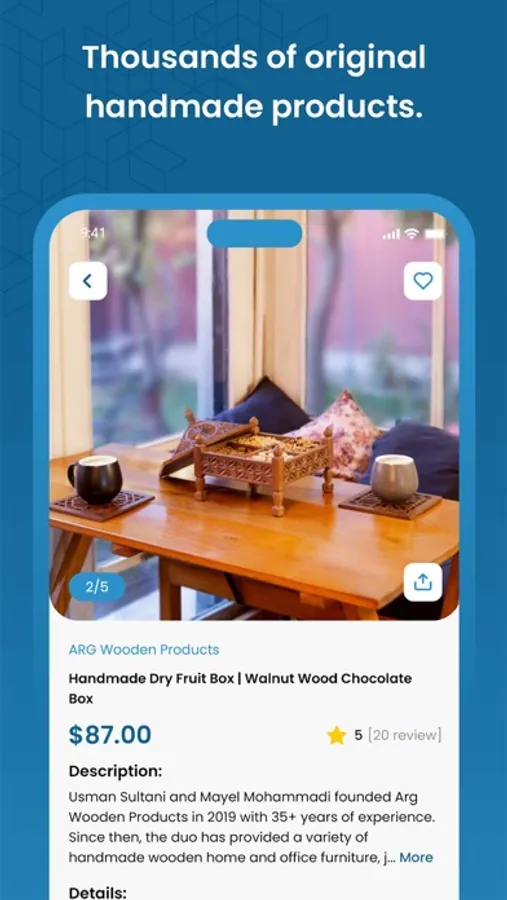 1. Buy Good: Aseel Buy Good enables people worldwide to buy handmade crafts and gifts directly from vendors in underdeveloped countries, the products on Aseel from Afghanistan and Turkey are unique and one of a kind. The platform allows artisans to easily sell authentic handmade items such as wooden goods, carpets & rugs, home décor, artwork, leather goods, ceramics, jewelry, accessories, and other custom products. Each purchase via Buy Good platform directly empowers an artisan who made these fantastic and credible handicrafts with love.