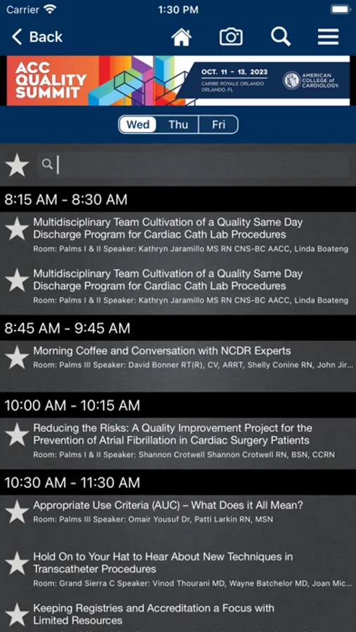 The ACC Quality Summit app is a guide for attendees to develop a personalized session schedule, learn about faculty, and details about each session offering. The Quality Summit app users can also connect to social media and obtain conference announcements and download presentation slides.