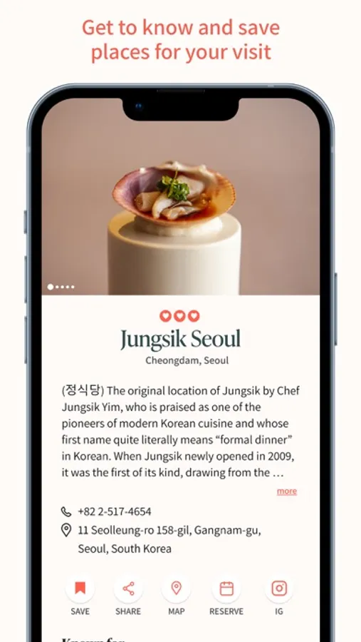 Local gems, bucket list-worthy places, stories behind the restaurant and the chef, business info, hours and reservation link, must-try menu and other tips