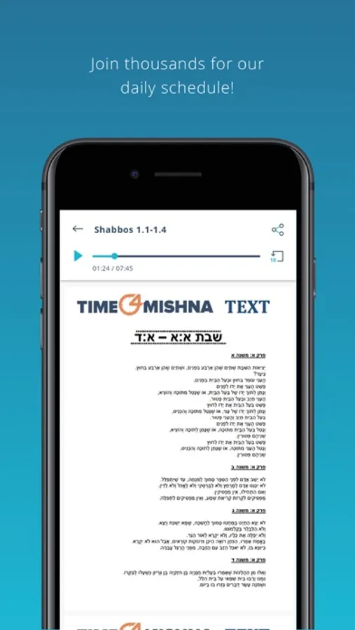 The Time4Mishna program involves learning four new mishnayos each day from Sunday through to Thursday, reviewing that week’s 20 mishnayos on Friday, and going over previous masechtos on Shabbos.