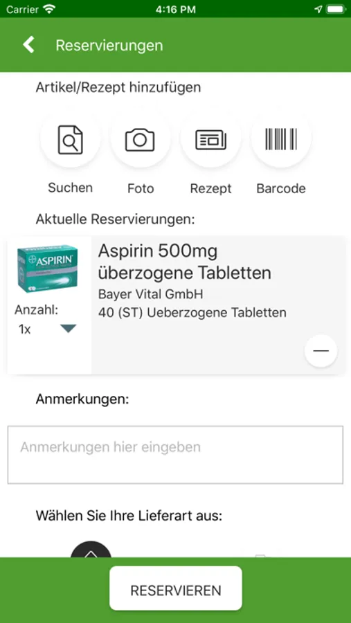 Ihr Rezept fotografieren Sie noch beim Arzt und schicken es uns direkt über den sicheren Kanal in unserer App. Wir benachrichtigen Sie sofort, wenn Ihr Medikament abholbereit ist.