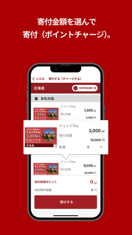 3. 寄付(ふるさと納税)する先の自治体を選んで、ポイントをチャージ