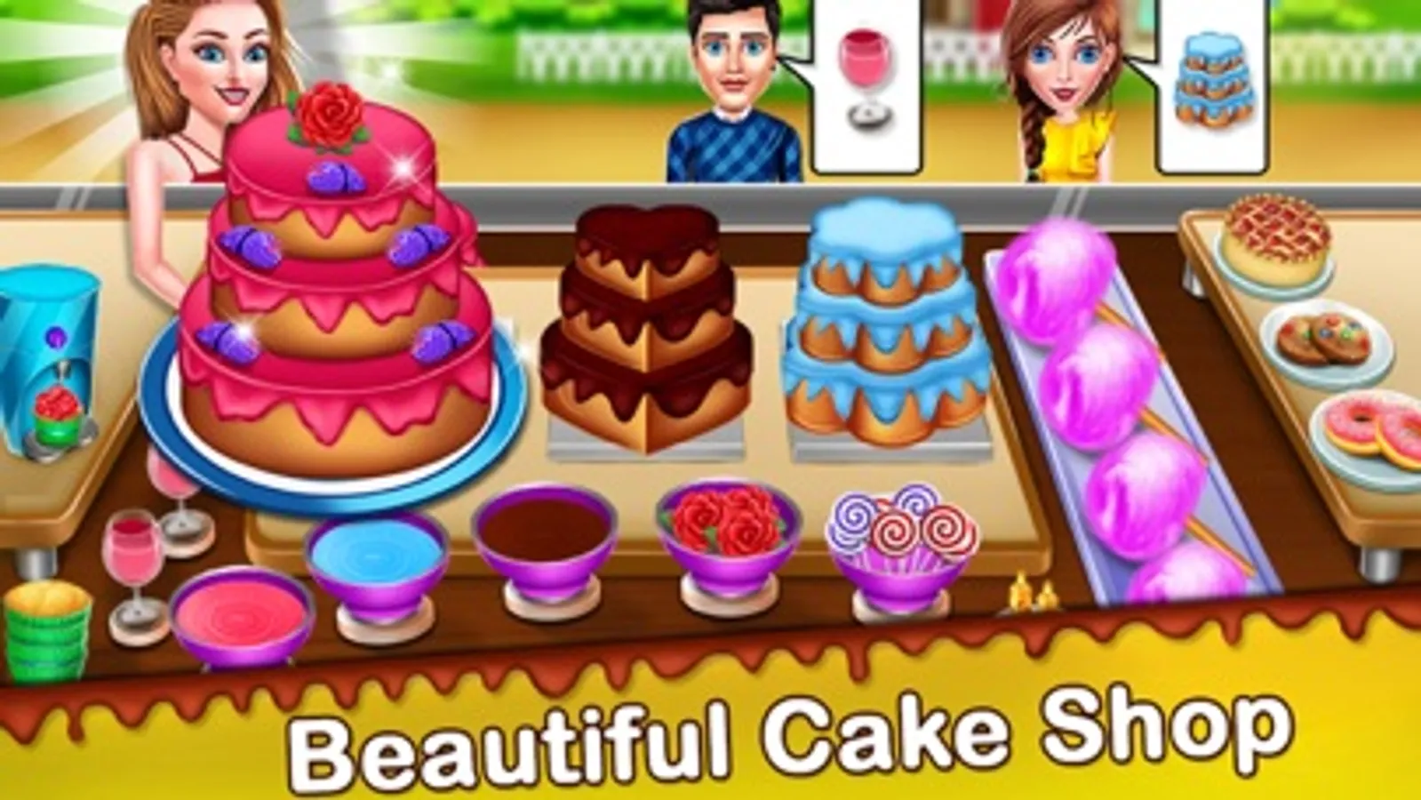 This cake shop game is specially made for you guys. In the cake making game, you will be allowed to prepare different cakes for the customers. Make different bakery items in your own cake factory and sell them to the customers in this cooking game. Earn lots of coins in this dessert shop game and unlock other cake shops included in the kitchen game. In the shop management game, I hope you can handle all the customers in my bakery shop with many power-ups and targets. You will have three food truck game experience in a single gameplay area. So get this addictive game right now, make delicious cakes and dessert, and sell them to the customers in cake mania. This chef game includes your own baker shop where you need to serve all the cake lover and dessert lover, customers. Earn lots of coins in my cafe shop, upgrade all the cooking appliances and use different power-ups to complete different challenging levels.
